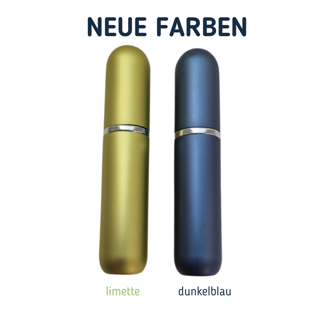 Inhaltierstift (Riechstift) aus Aluminium, der Behälter für das Duftvlies ist aus Glas.