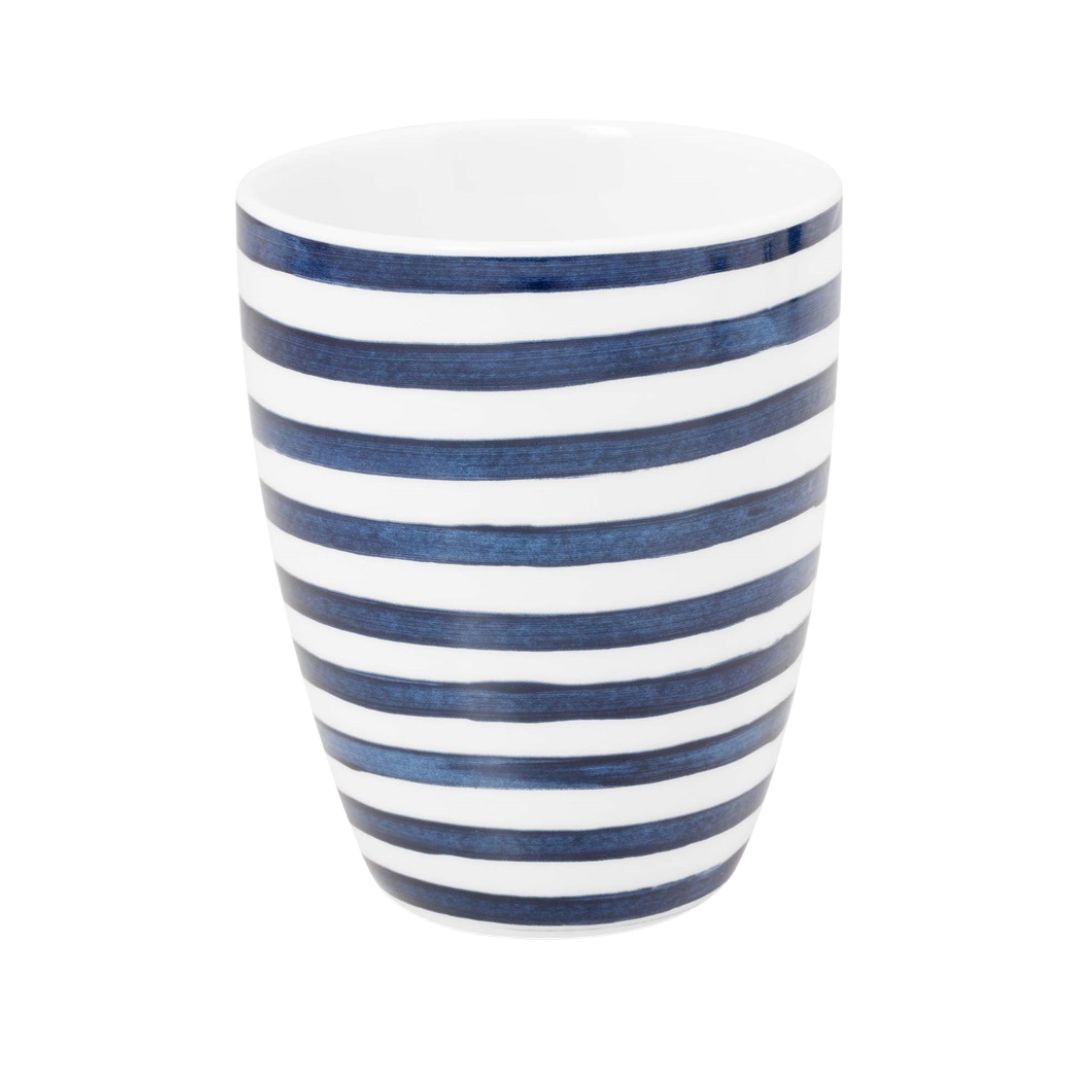 Stilvoller Becher ohne Henkel verbindet modernes Design mit praktischem Einsatz für einen trendigen Touch an jedem Tisch. Dieser Kaffeebecher hat eine Kapazität von 400 ml. Die Tassen sind blau mit Weiß bemalt. Aus hochwertigem Porzellan und somit kratzfest.